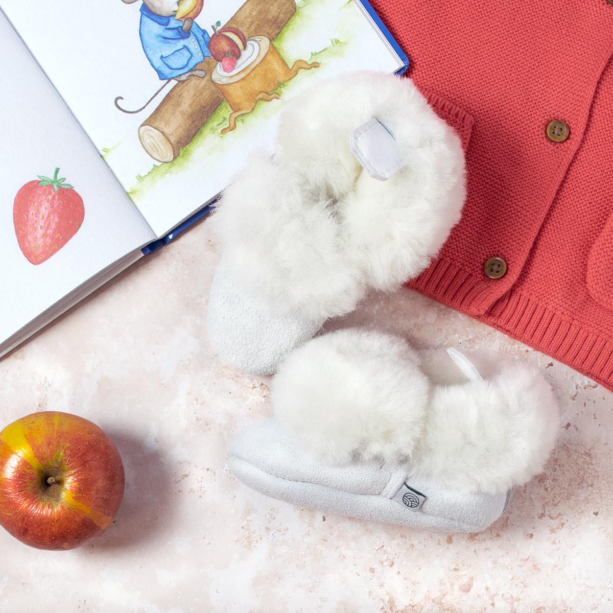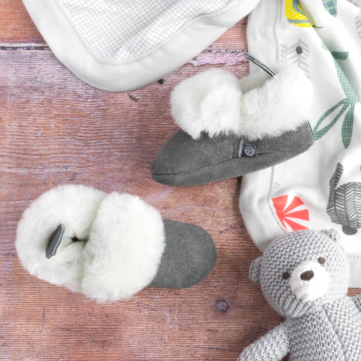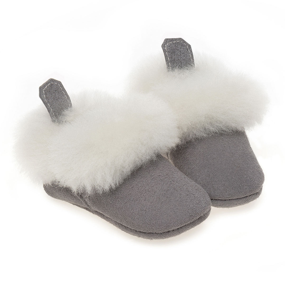 Barra Hand-Stitched Sheepskin Baby Booties - Grey