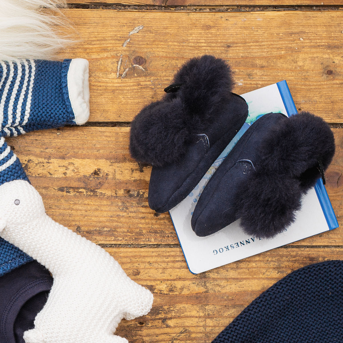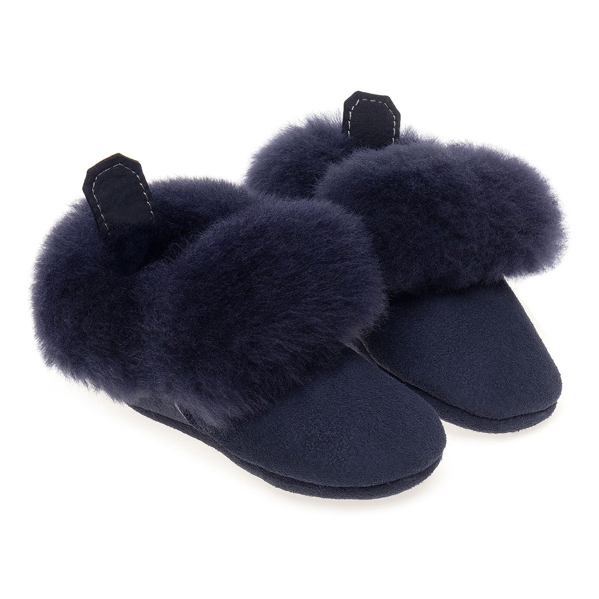 Barra Hand-Stitched Sheepskin Baby Booties - Navy