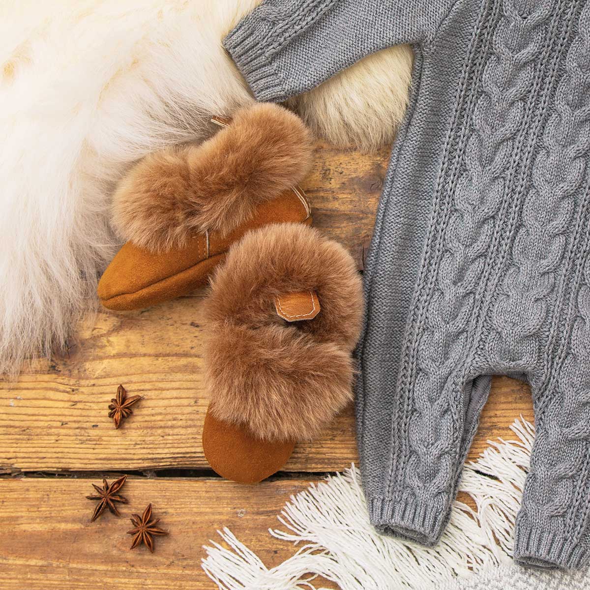 Barra Hand-Stitched Sheepskin Baby Booties - Honey