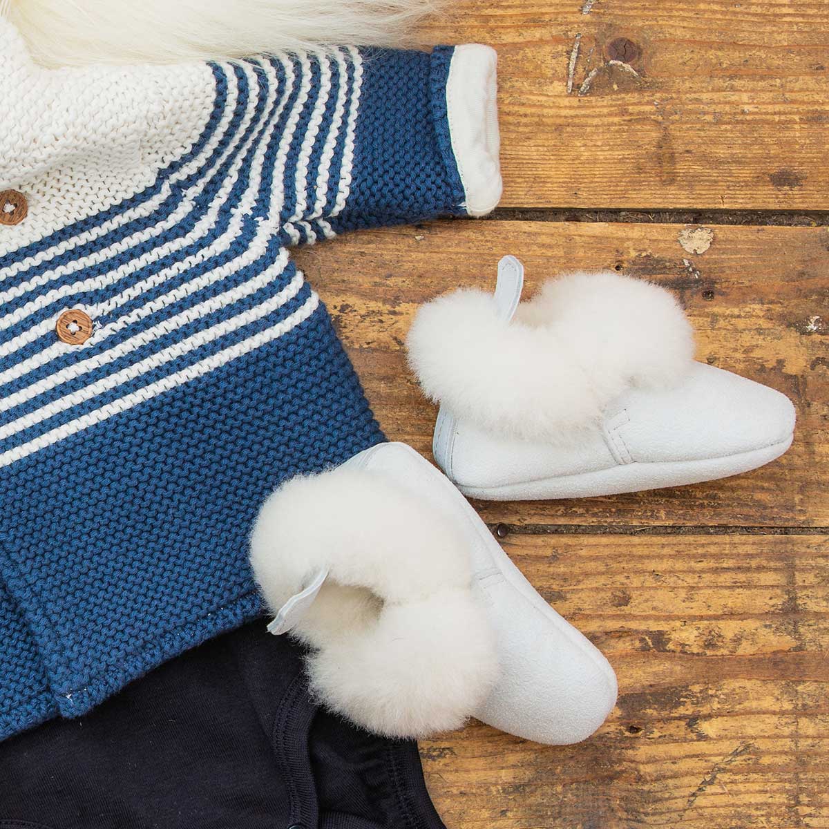Barra Hand-Stitched Sheepskin Baby Booties - White