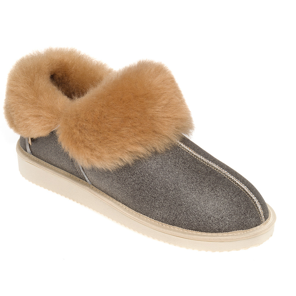 Gael Sheepskin Slippers - Grey Distressed Leather