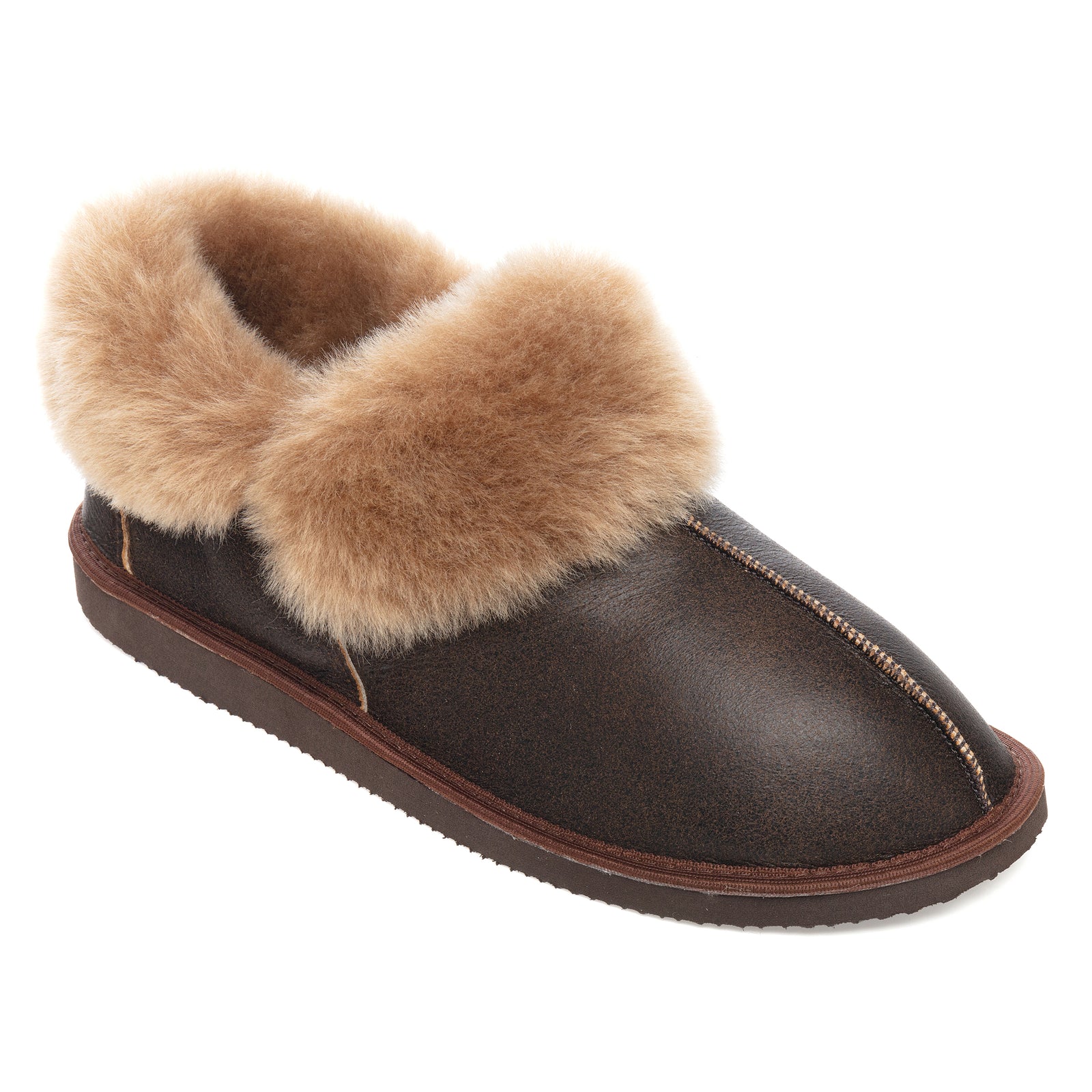 Gael Sheepskin Slippers - Nutmeg Distressed Leather