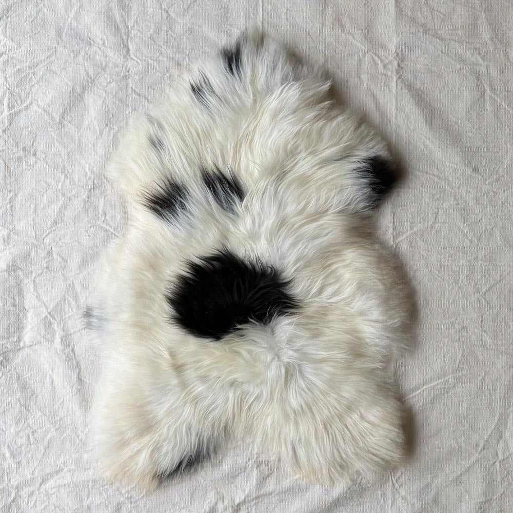 Unique, undyed Icelandic sheepskin with natural colour pattern, as shown in the photos - this massive, beautiful, bold black and white spotted fleece is the specific one you will receive.