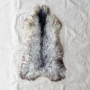 Unique, undyed Gotland sheepskin with natural colour pattern, as shown in the photographs - this gorgeous deep fleece with silver undertones and chocolate tips, long, wavy curls is the specific one you will receive.